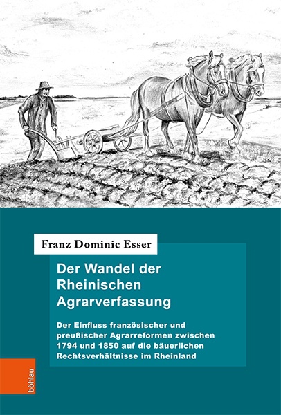 Franz Dominic Esser, Der Wandel der Rheinischen Agrarverfassung. Der Einfluss französischer und preußischer Agrarreformen zwischen 1794 und 1850 auf die bäuerlichen Rechtsverhältnisse im Rheinland (= Forschungen zur deutschen Rechtsgeschichte; 32), Köln/Weimar/Wien: Böhlau 2019, 270 pp., EUR 70,00, ISBN 978-3-412-51703-8.